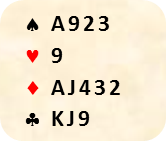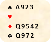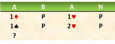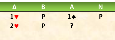 Δυστυχώς ο σύντροφός μας επαναδηλώνει τις κούπες του. Η αγορά του δείχνει ένα αδύνατο χέρι 12-16 πόντους με 6-φυλλη κούπα. Εμείς θα πρέπει να απορρίψουμε οποιαδήποτε σκέψη συνέχισης της αγοράς. Το 2ΝΤ από την Ανατολή θα δείξει ένα προτασιακό χέρι 10-11 πόντους χωρίς φιτ και ο σύντροφός μας θα συνεχίσει την αγορά αν είναι στο άνω εύρος των πόντων του δηλαδή 14-16 πόντοι! (Αγορά 3 επίσης είναι λάθος επιλογή αφού αγορά νέου χρώματος στο 3ο επίπεδο είναι δυνατή και επιτακτική δεν σταματάμε κάτω από την μανς!)